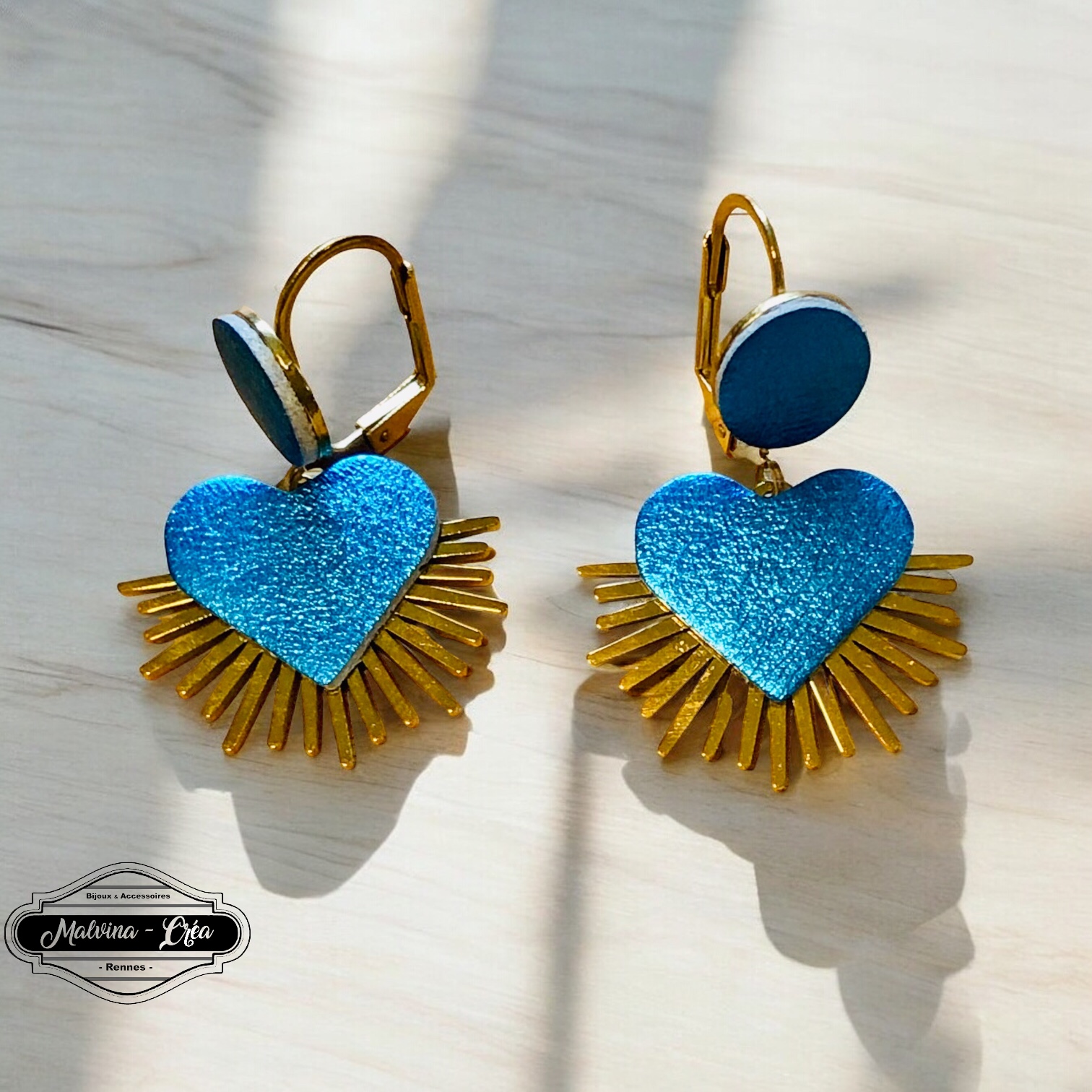 boucles d'oreilles - MEXICO- en cuir bleu caraïbes irisé - support dormeuses-1