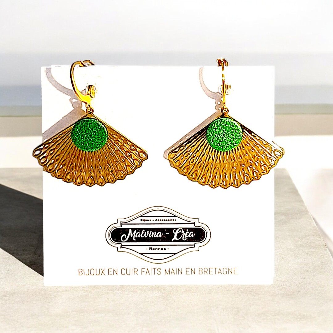 boucles d’oreilles – ABANICO- en cuir vert gazon irisé – support mini créoles-3