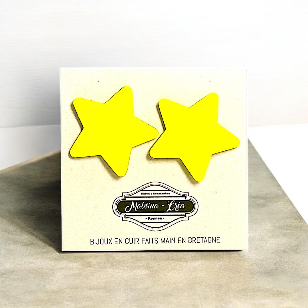 Boucles d’oreilles en cuir – MAXI ESTRELLAS- Jaune fluo