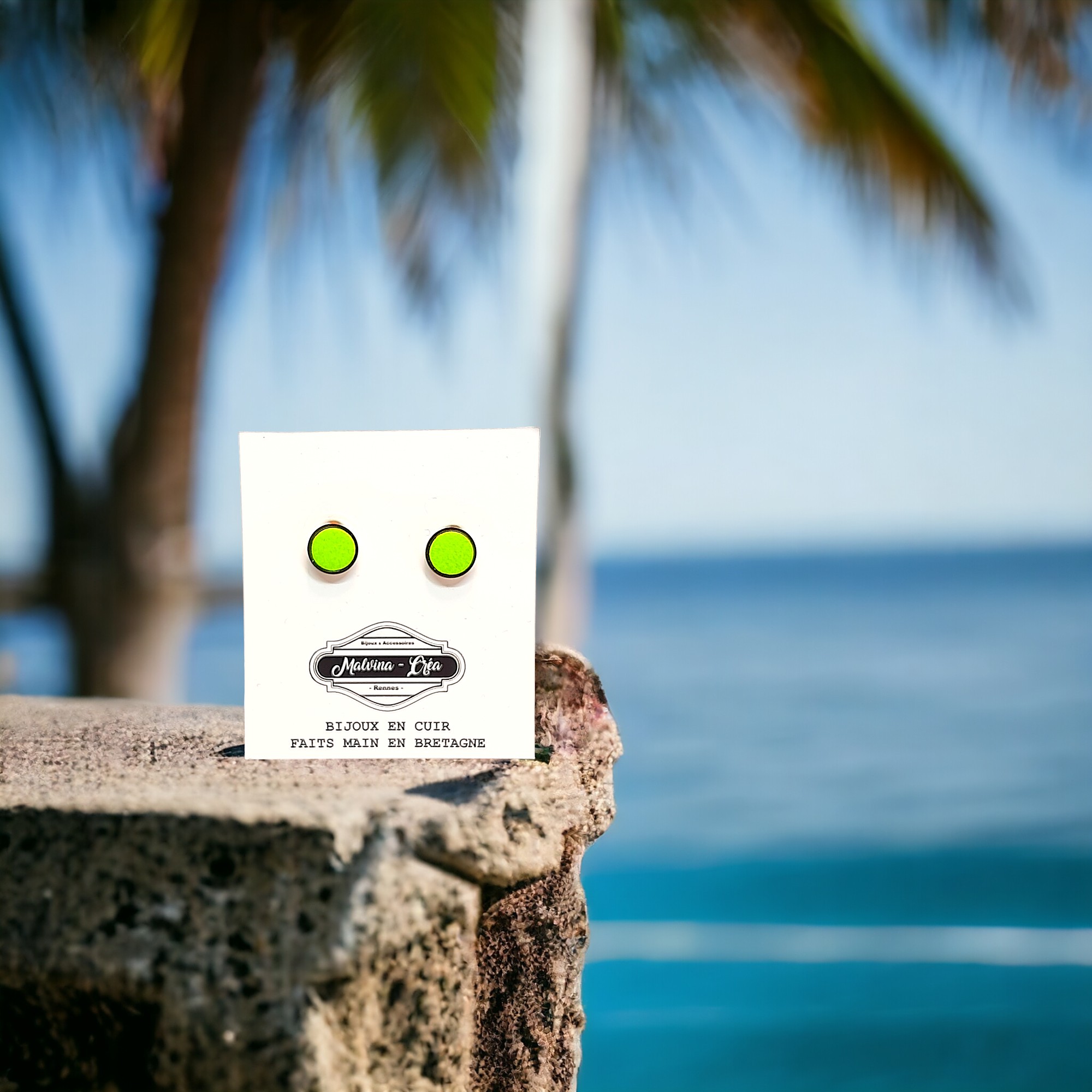 Boucles d’oreilles puces en cuir | Cuir recyclé vert fluo.